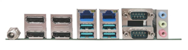 LAN/USB/COM 4x USB3.2 (Gen 1), 6x USB2.0 2x 2.5GbE LAN, up to 6x RS232 (2x RS232/422/485
